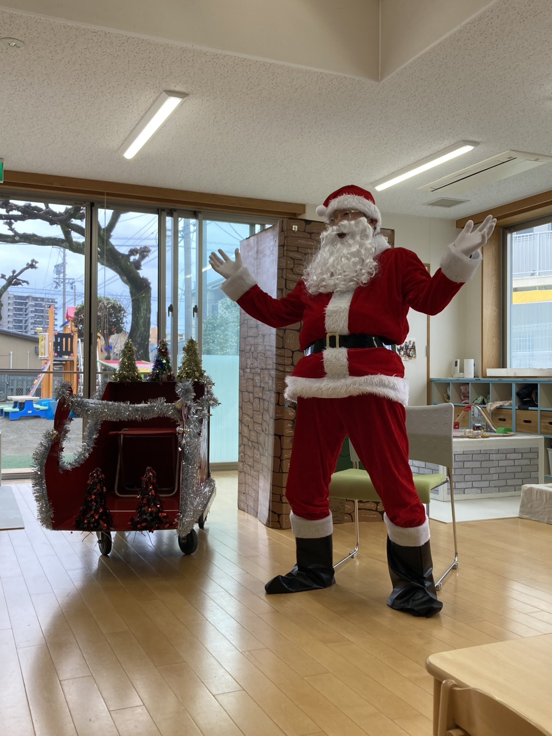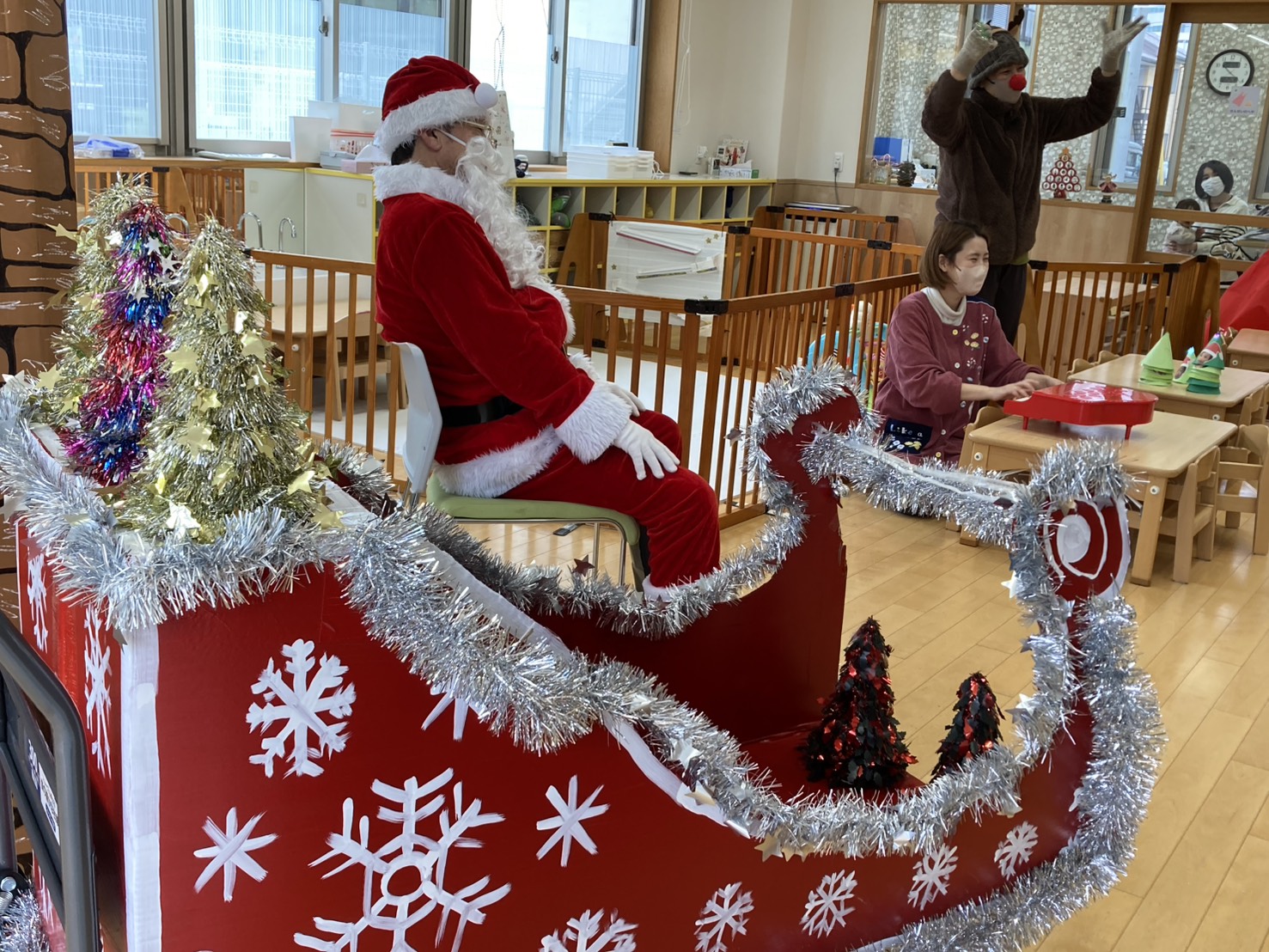 トナカイにそりを押され、ナーサリーにサンタさんが来てくれていました!!
