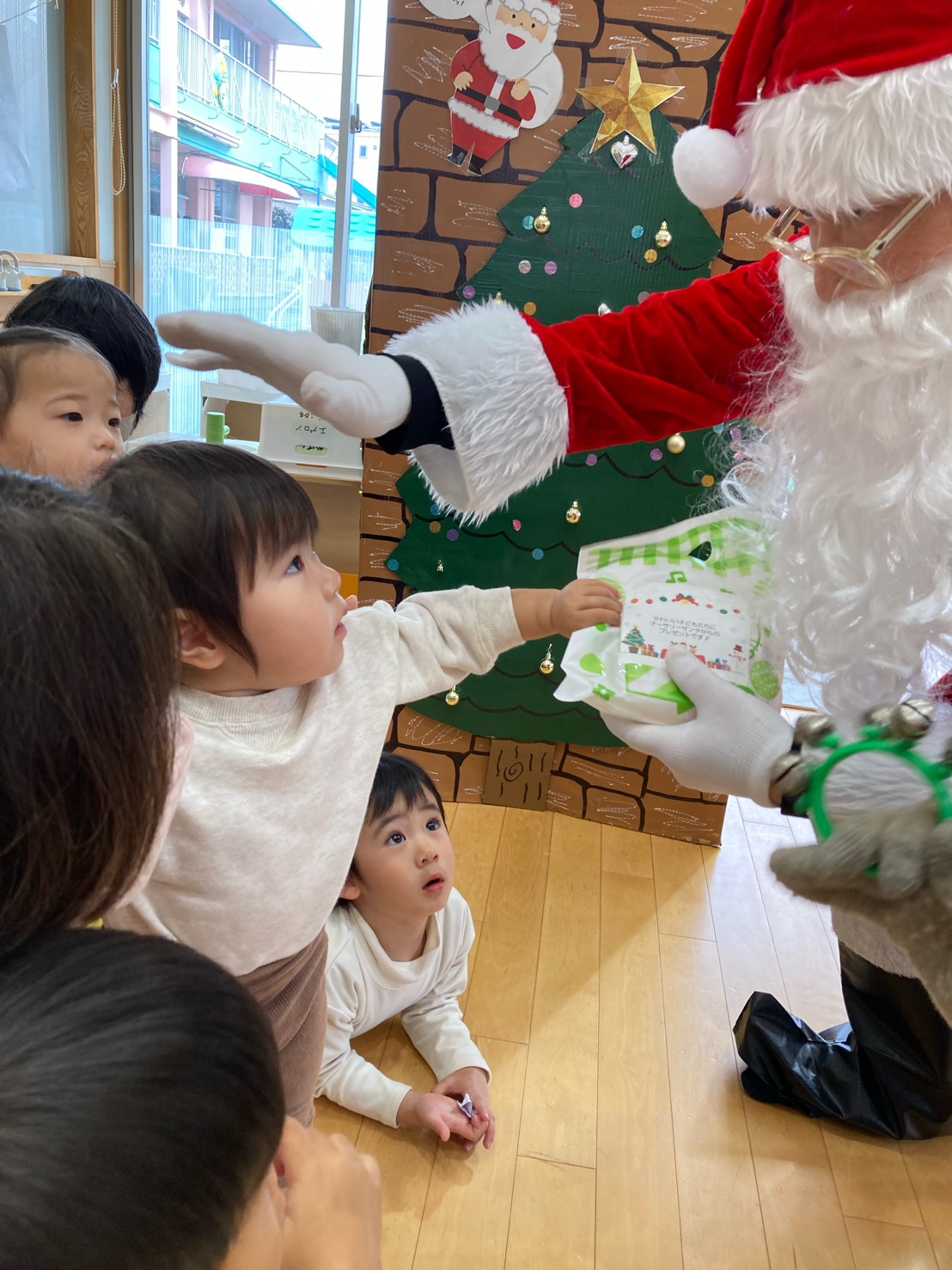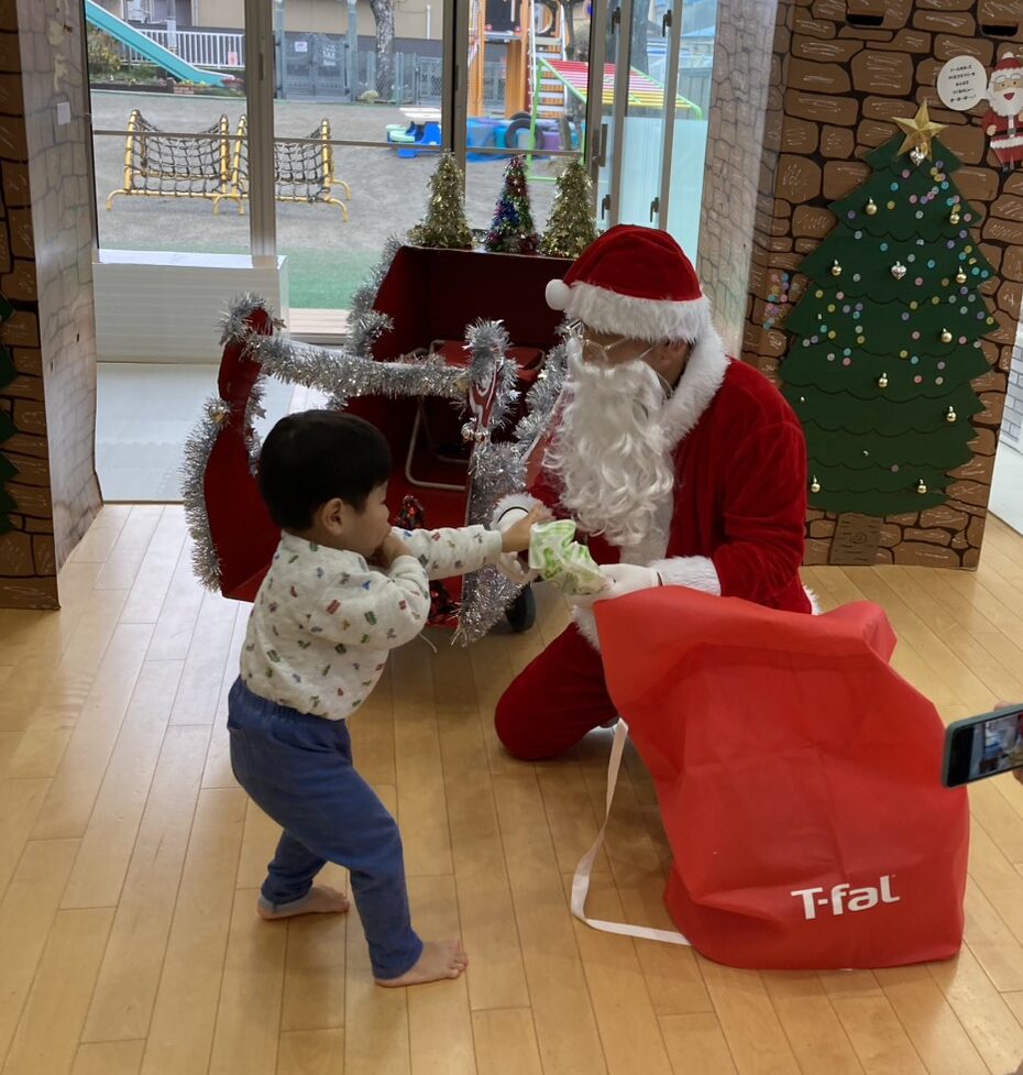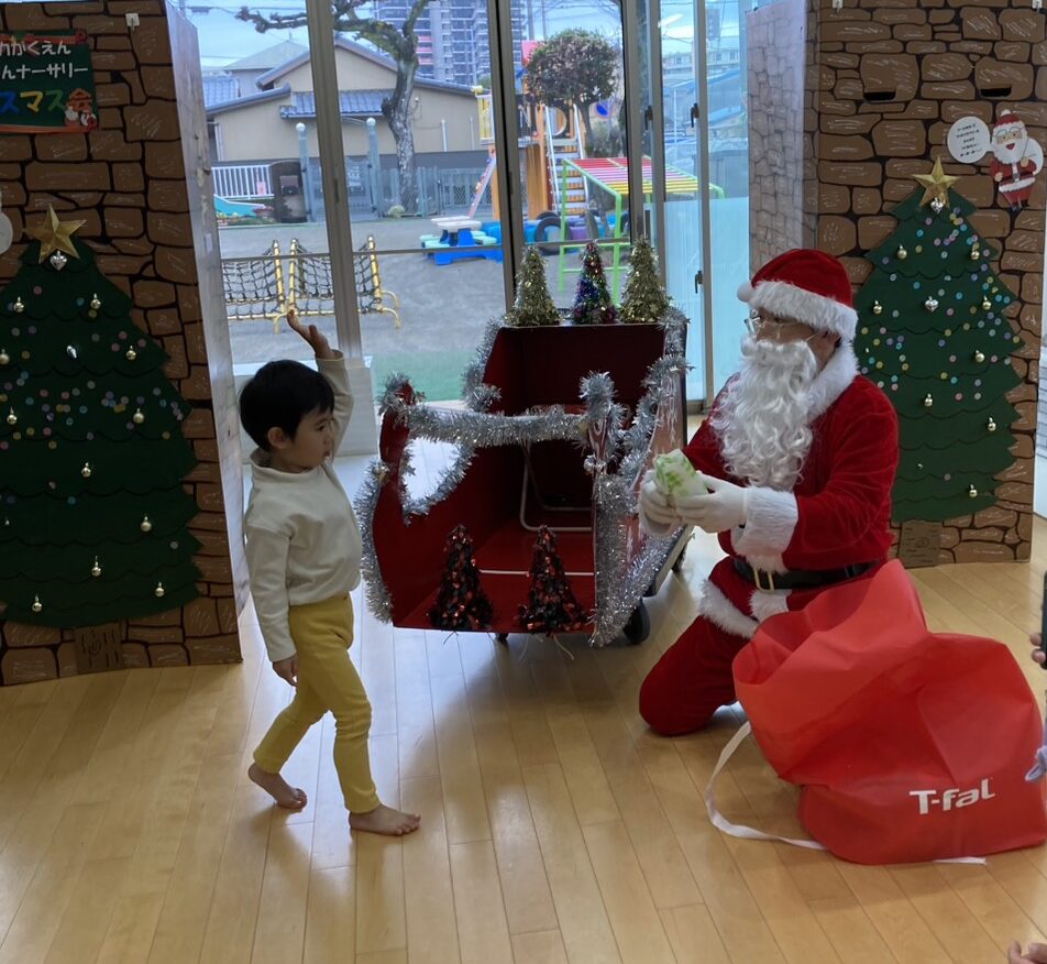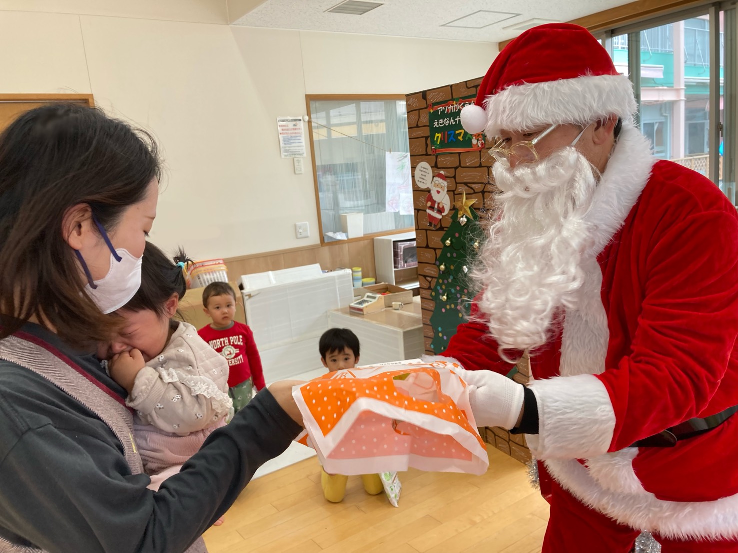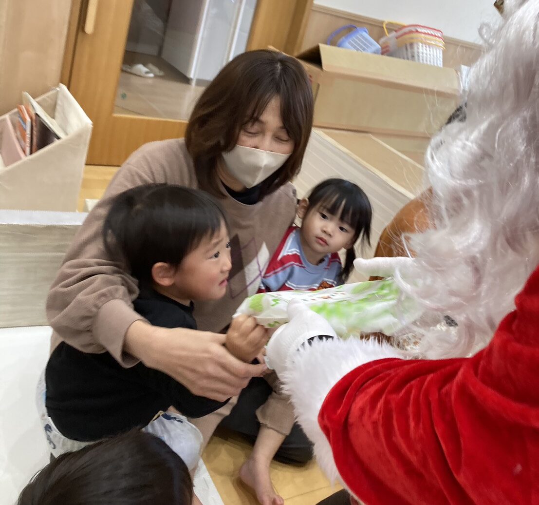 始めてみるサンタさんに驚き、泣いてしまう子もいます。