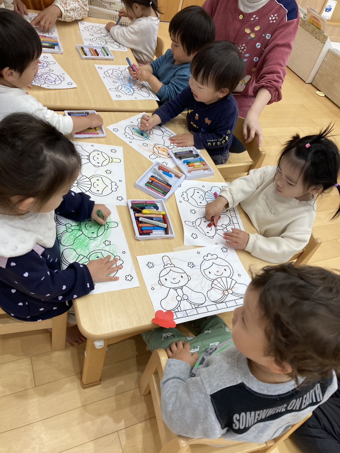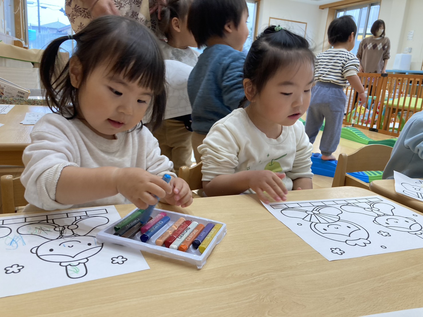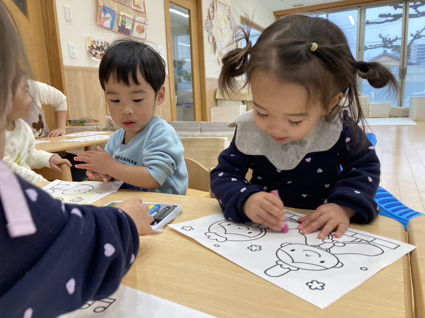 たんぽぽ組とすみれ組のお友だちはぬりえを楽しみました!