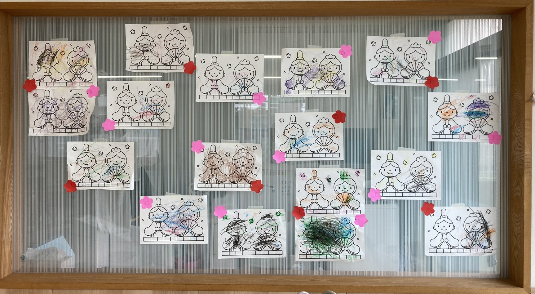 あいにくの雨模様となりましたが、園内は子どもたちの元気な声と色とりどりの素敵な作品に包まれ、とても賑やかなひな祭りの1日となりました。