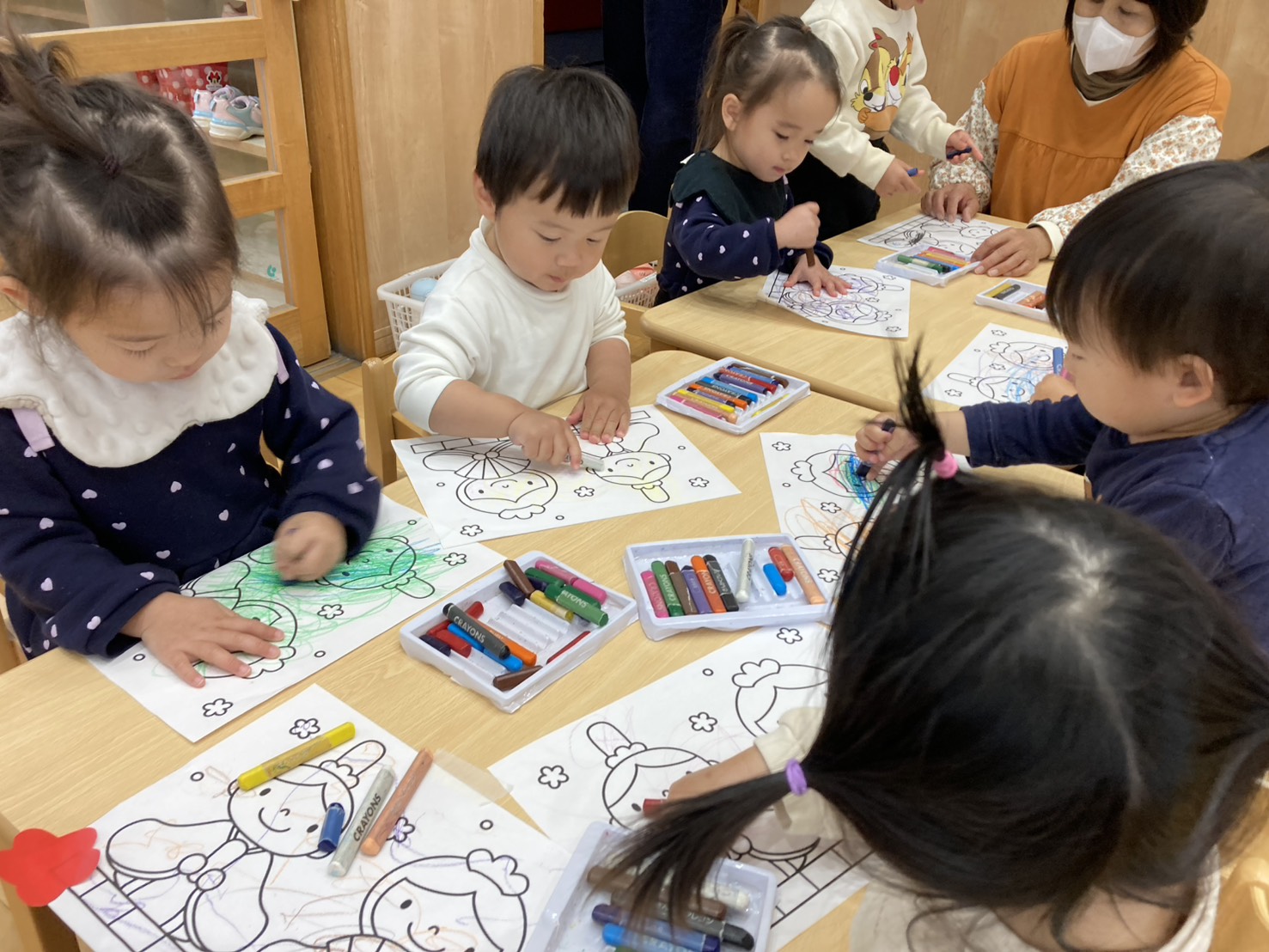 たんぽぽ組とすみれ組のお友だちはぬりえを楽しみました!
